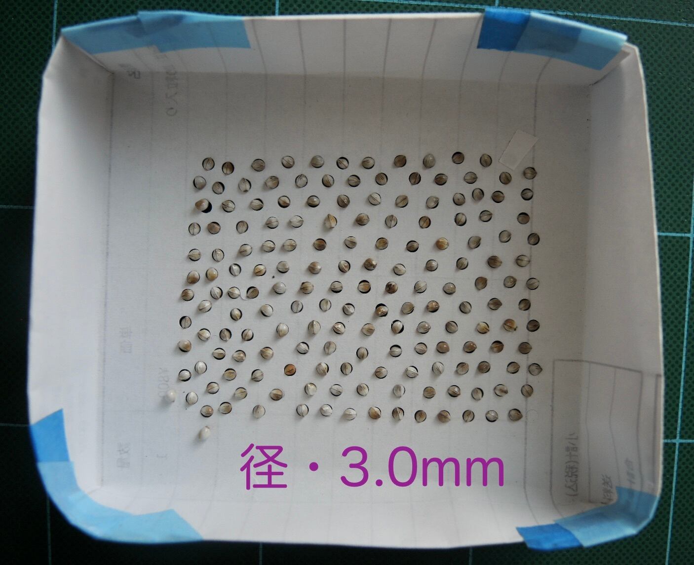 分別時 径3.0mm(+-0.1mm)の種子です。現在では乾燥が進み、やや小振りになってます。