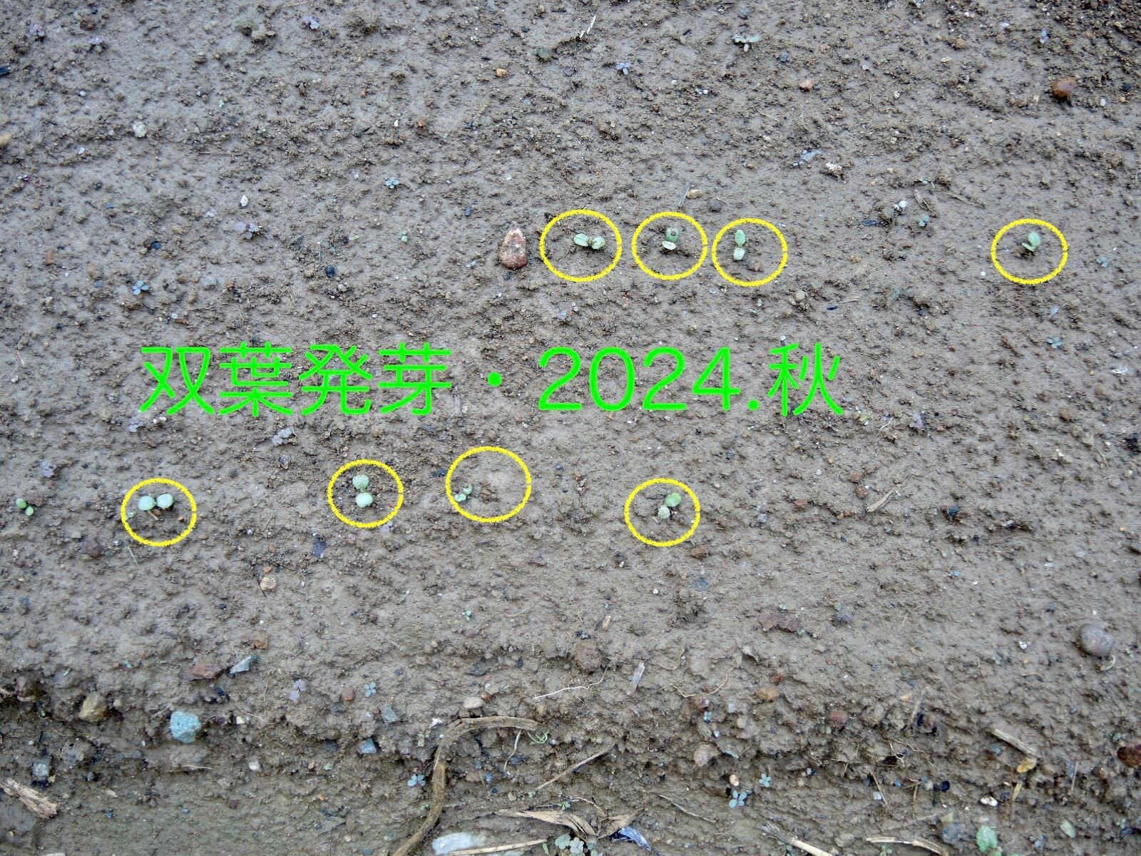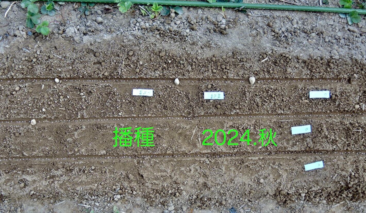 9月中旬以降となる見込めです。冬を前に発芽させ、翌年晩秋までの12ヶ月の生育結果は期待大です。温暖地では冷蔵庫での保管が発芽率を高めると思われます。