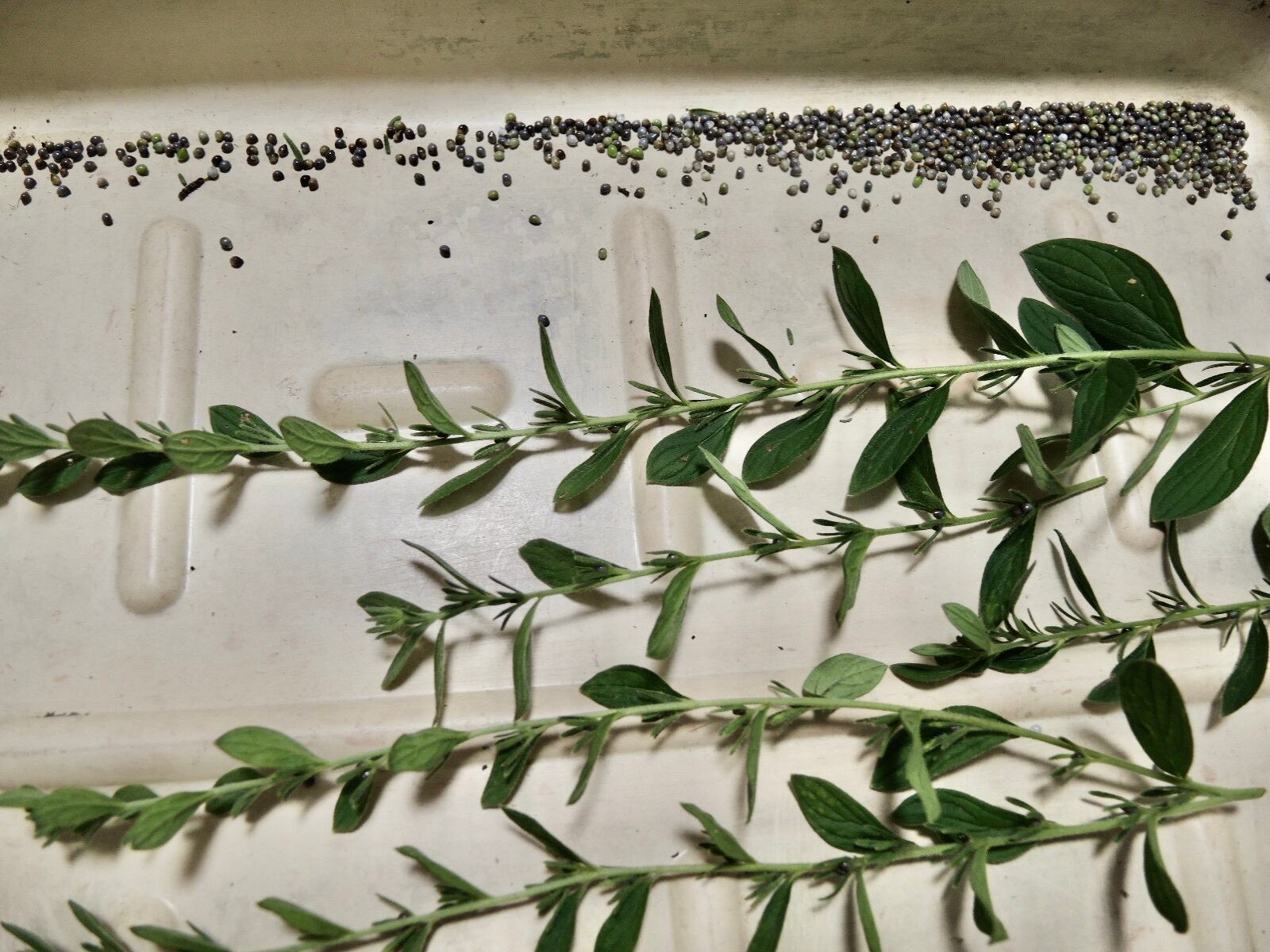 多くの種子を付けた分枝には、白化現象のする種も見え始め、分枝の切り取りを始めています。